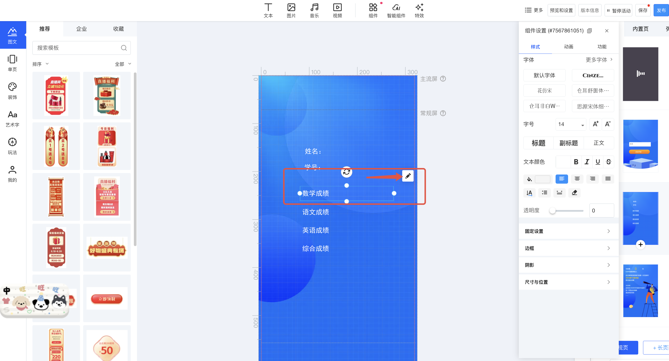 还有一种情况,用户需要在一长段文本中选择其中的某几个字进行设置动态内容,此时需要先选中这一段中的这几个字,点击右上角