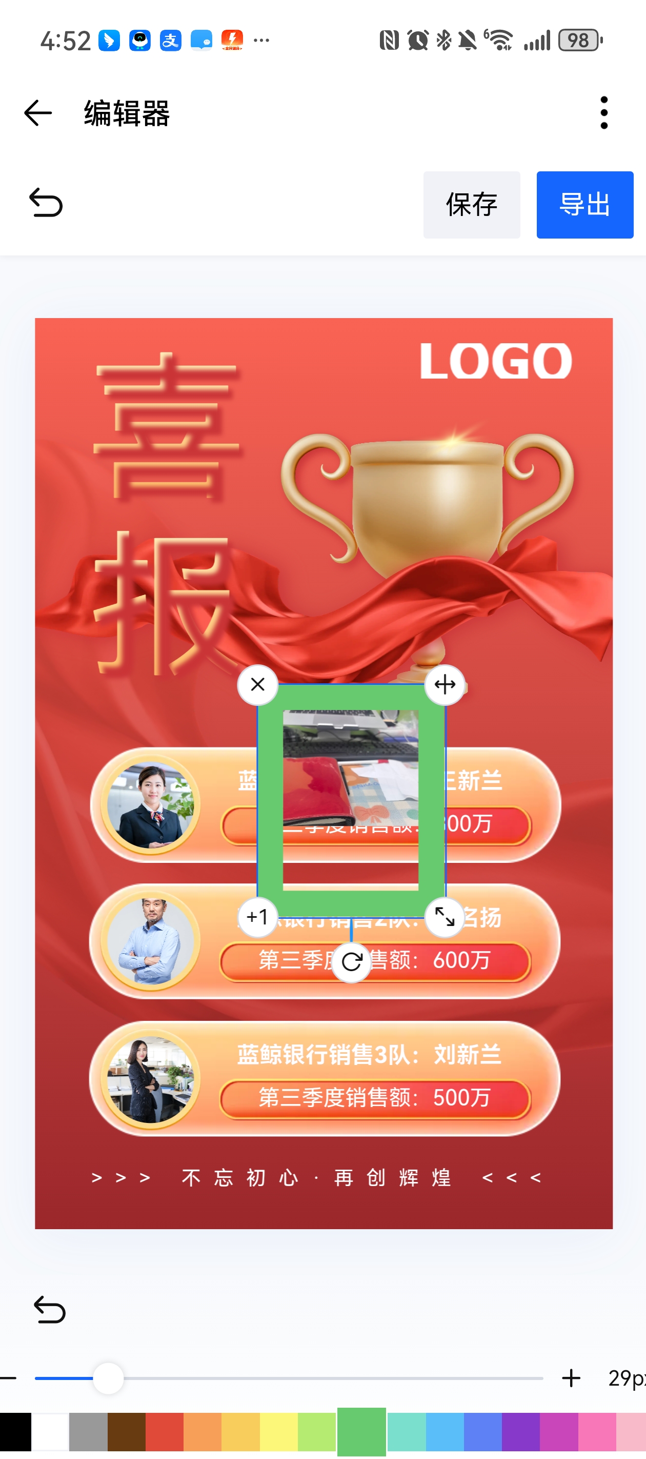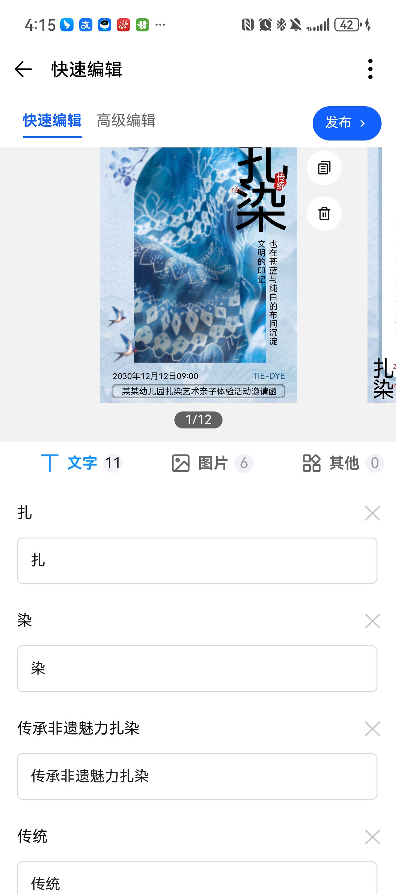 2.5、海报编辑器支持换文字、换图片,是指当前画布中所有的文字和图片会被显示出来,支持直接更换,如下图