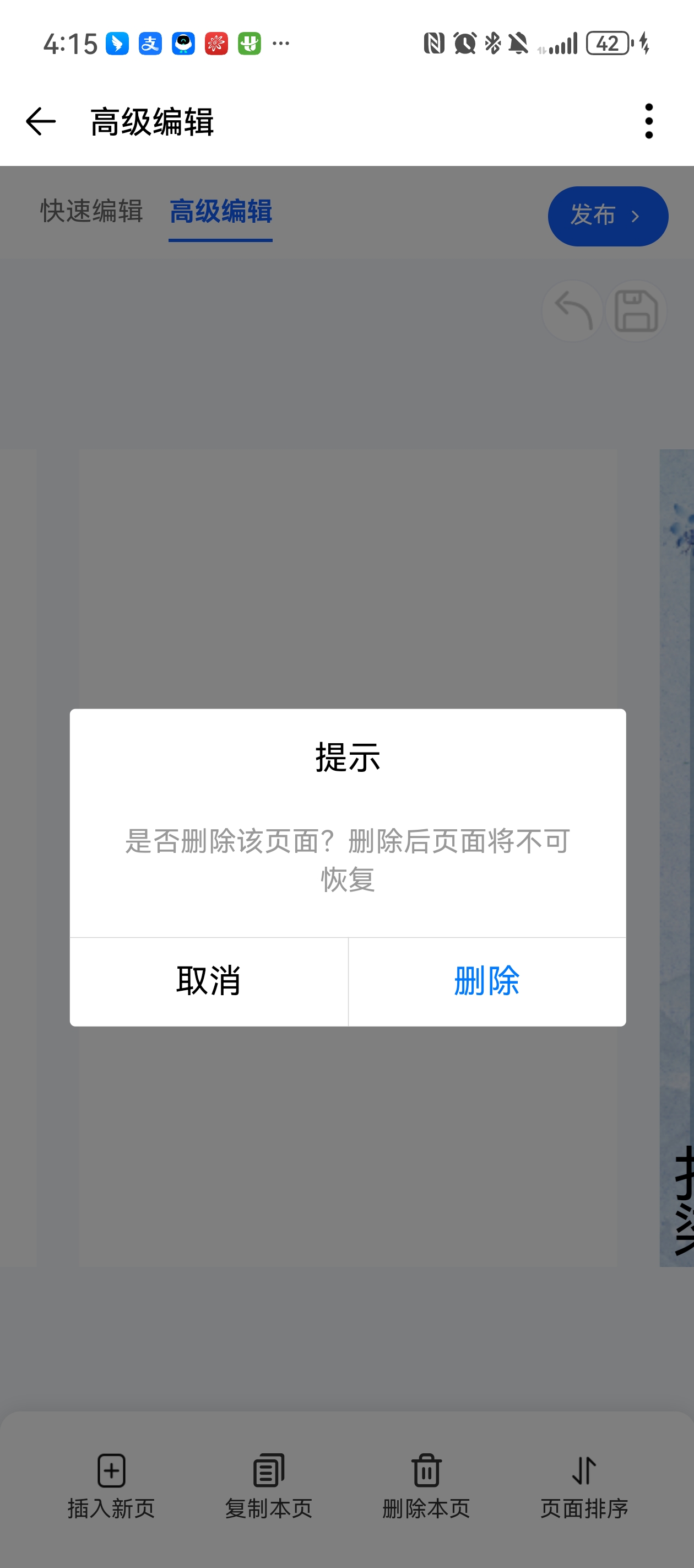 2.2、点击页面管理,支持插入新页、复制本页、删除本页和页面排序