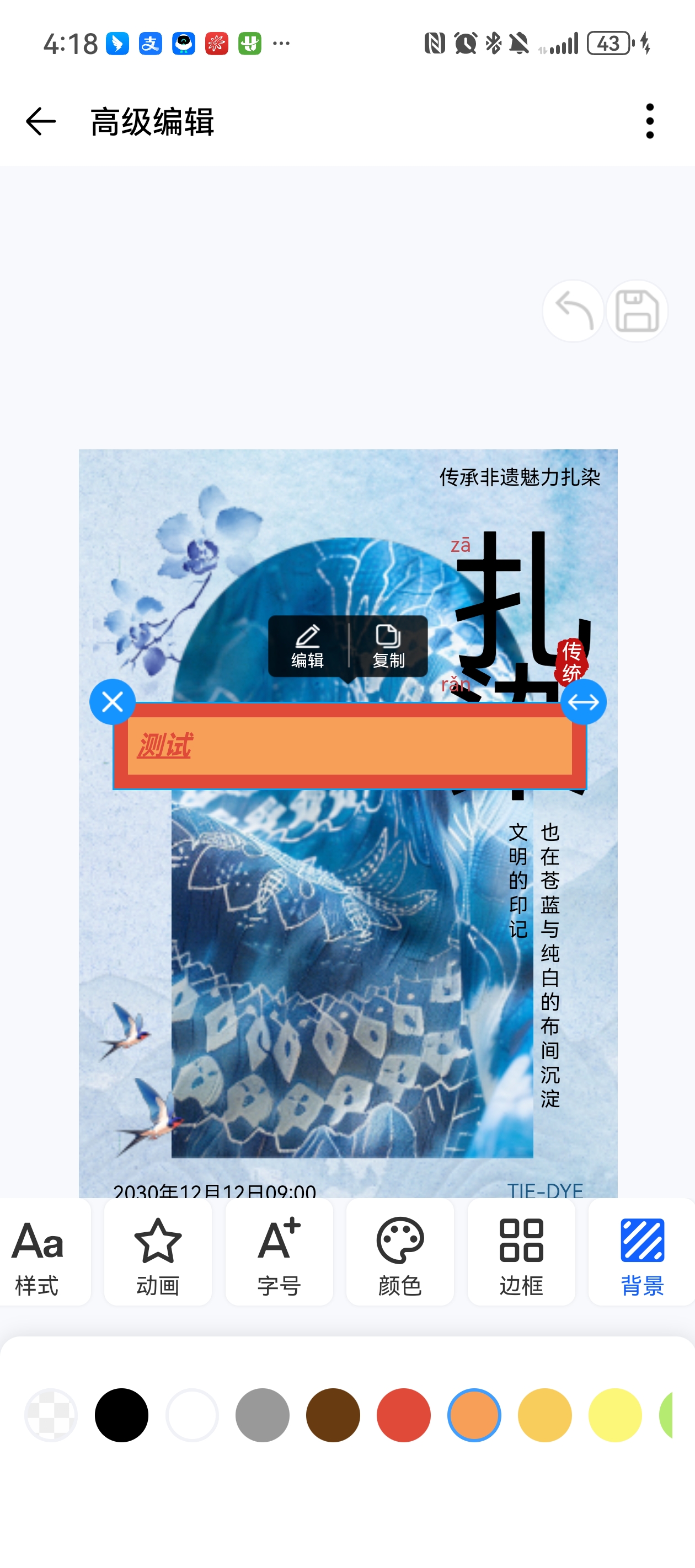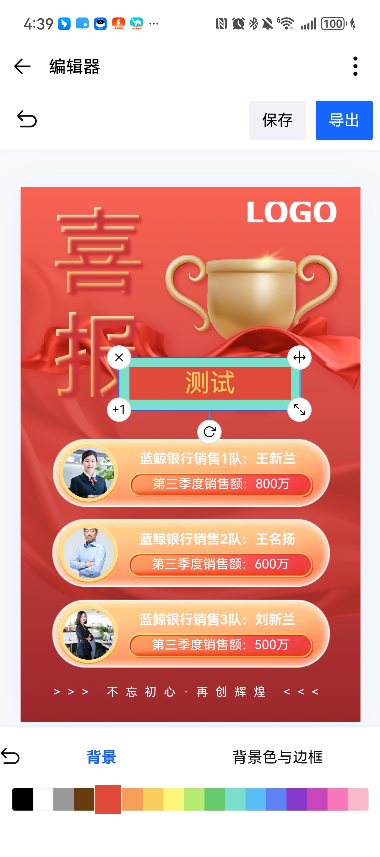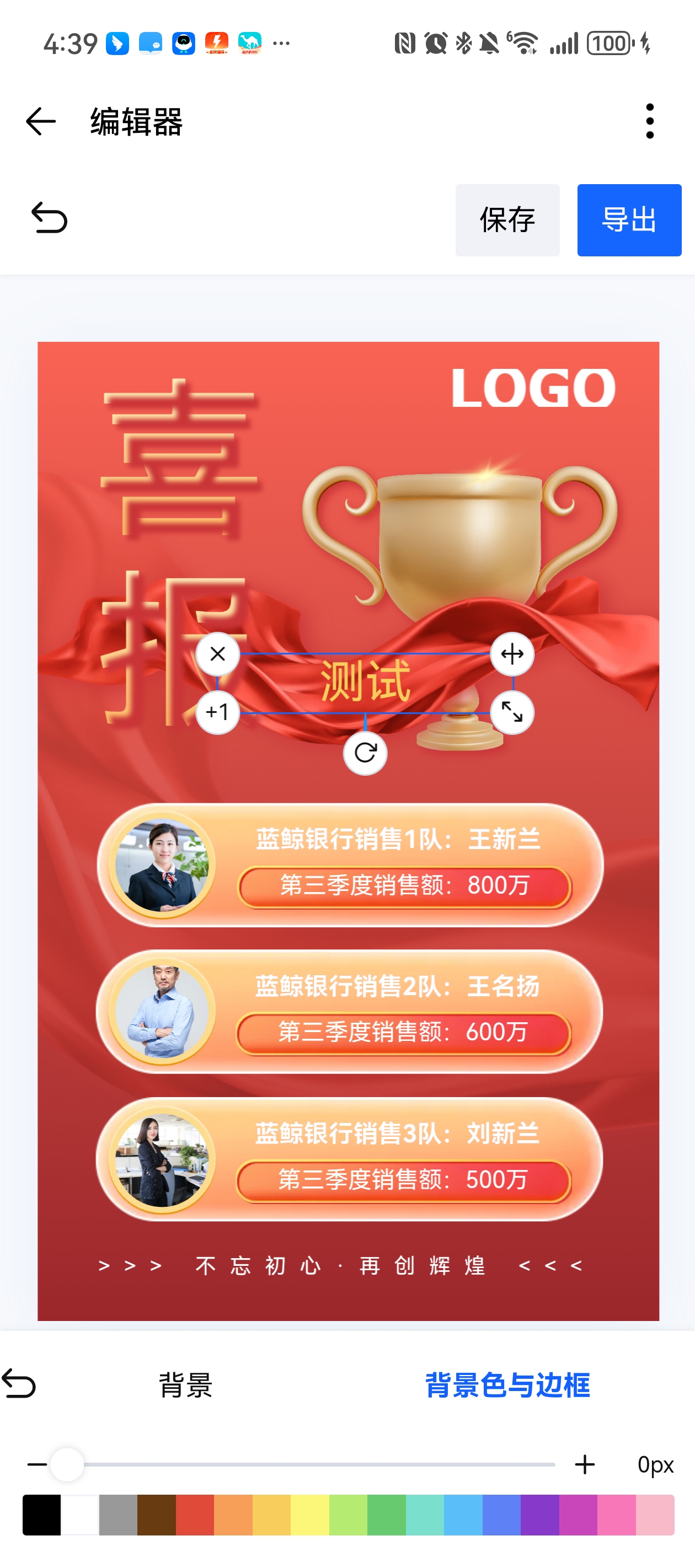2.7、点击修改海报的背景,支持修改背景色,调节透明度,修改背景图