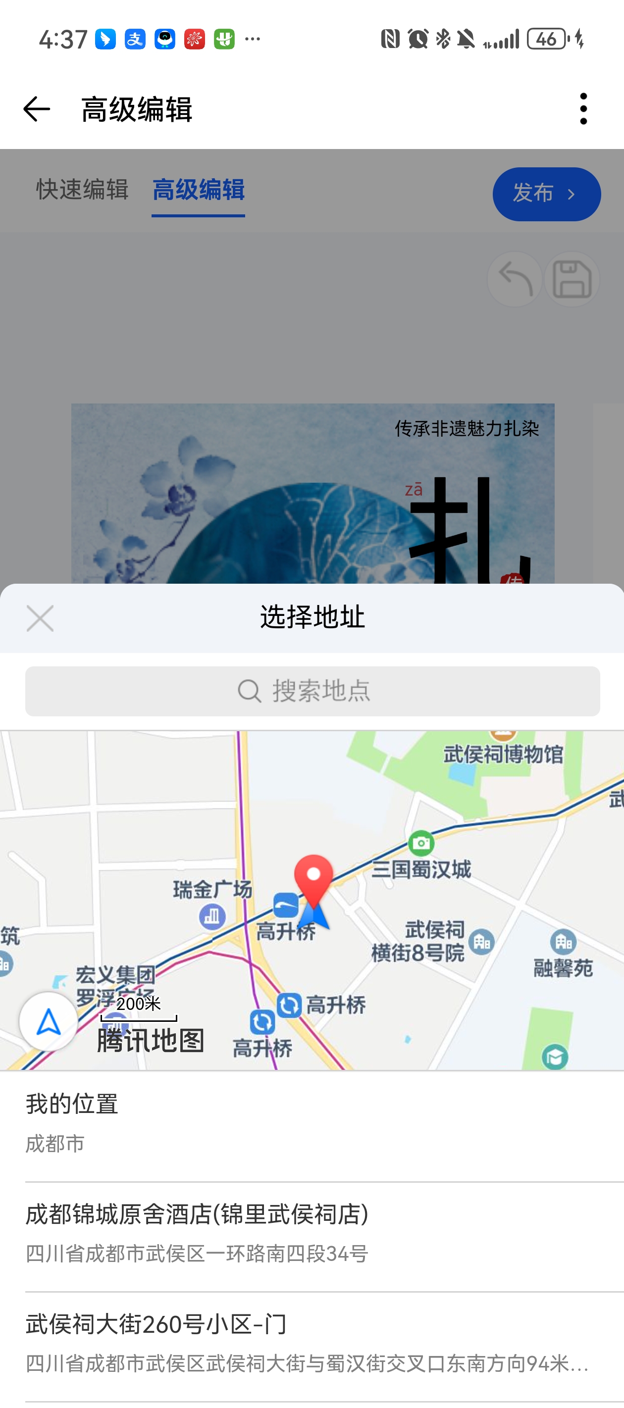 2.9、点击添加地图,出现选择地址的弹框,选择之后,画布中出现添加后的地图组件,支持复制、删除、编辑地图,支持拖动位置,调整尺寸;