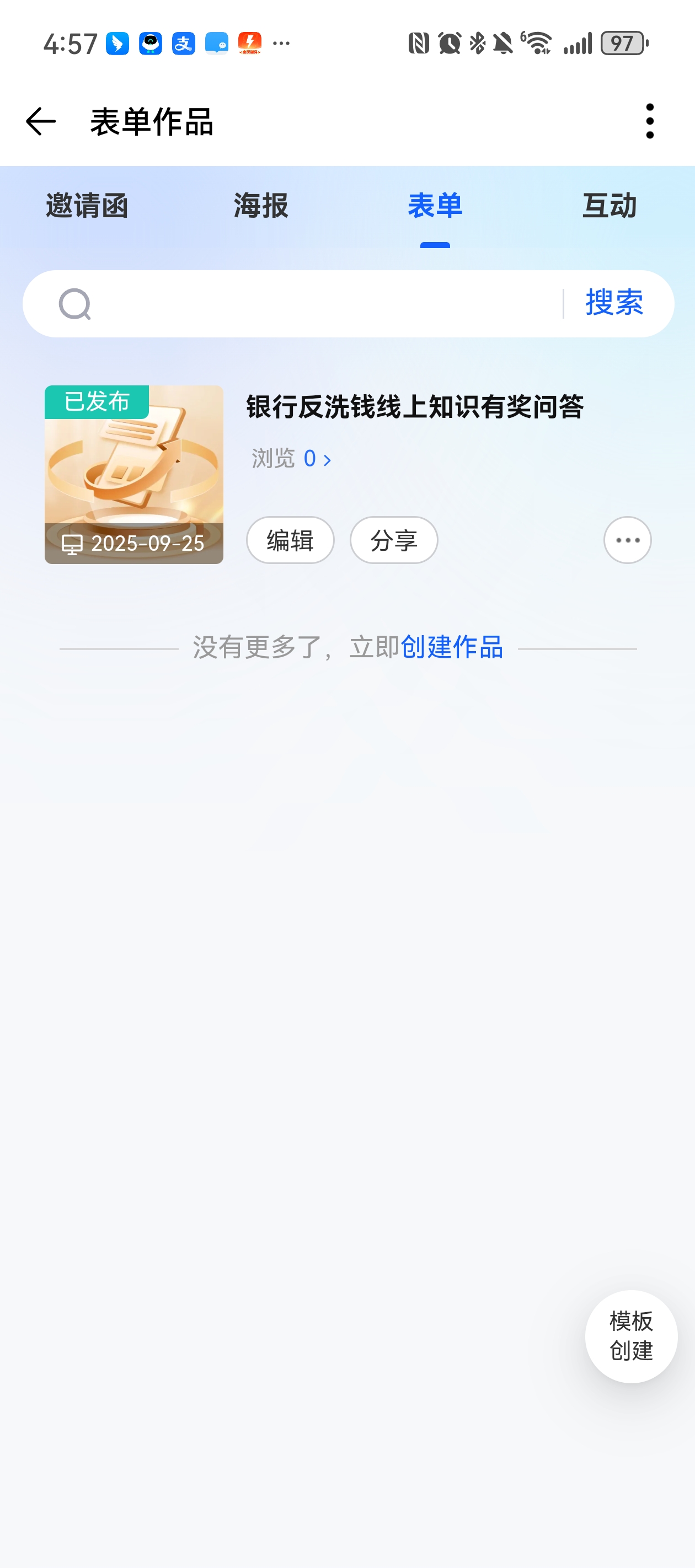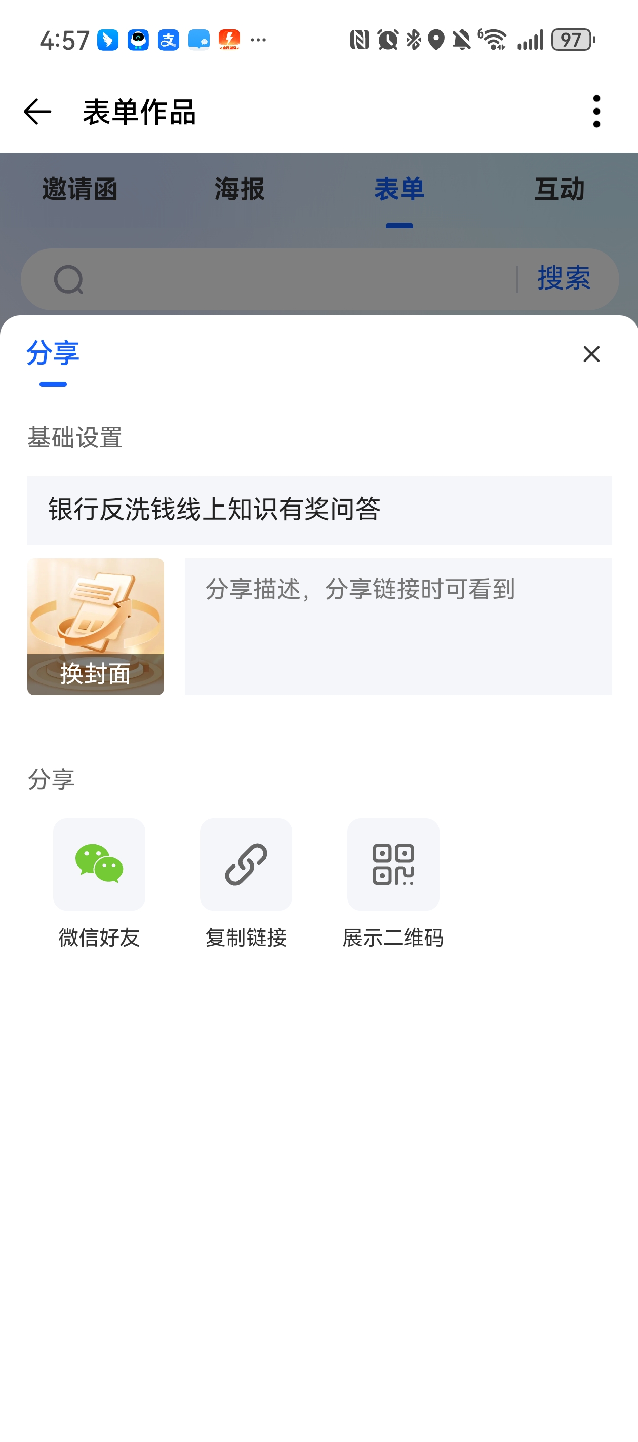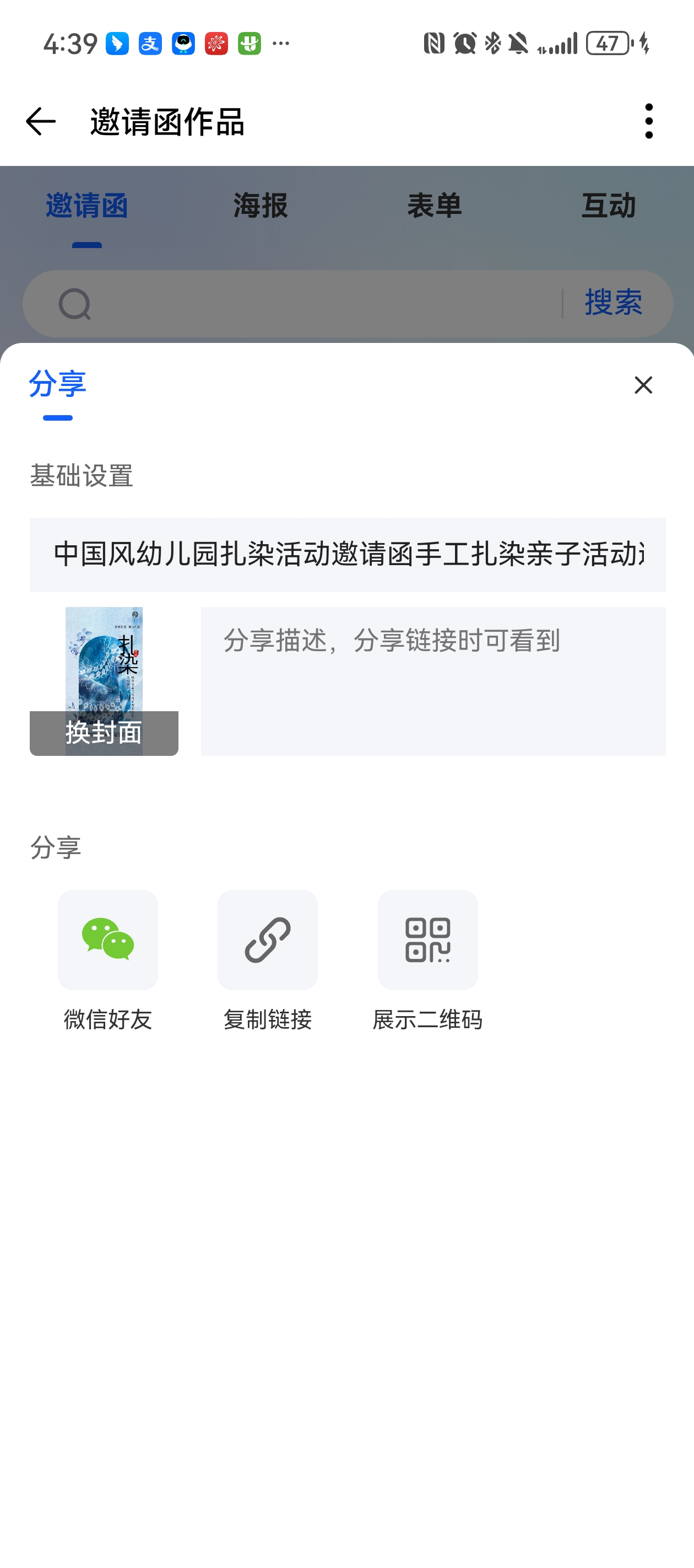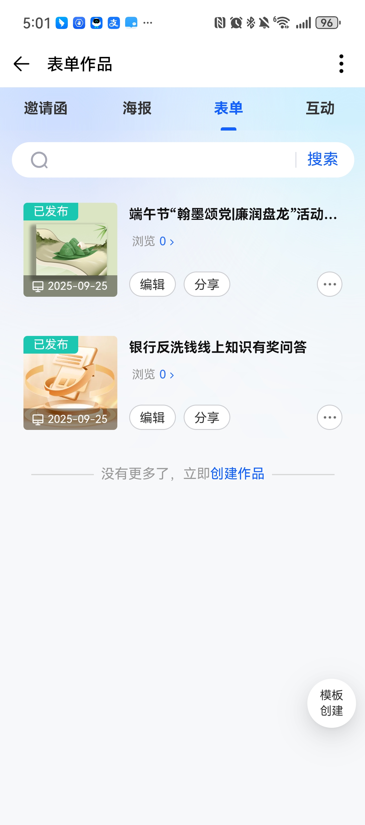 支持查看传播统计数据和表单数据,支持复制作品、删除作品、修改作品的封面、标题、描述等;