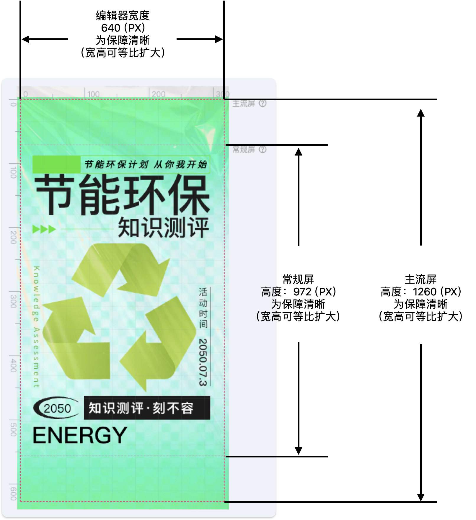 1.常规屏:宽高比可等比放大、小屏幕手机(iphone8等)只能看到常规屏内容,尽可能将文案、logo等重要信息放置到常规屏内