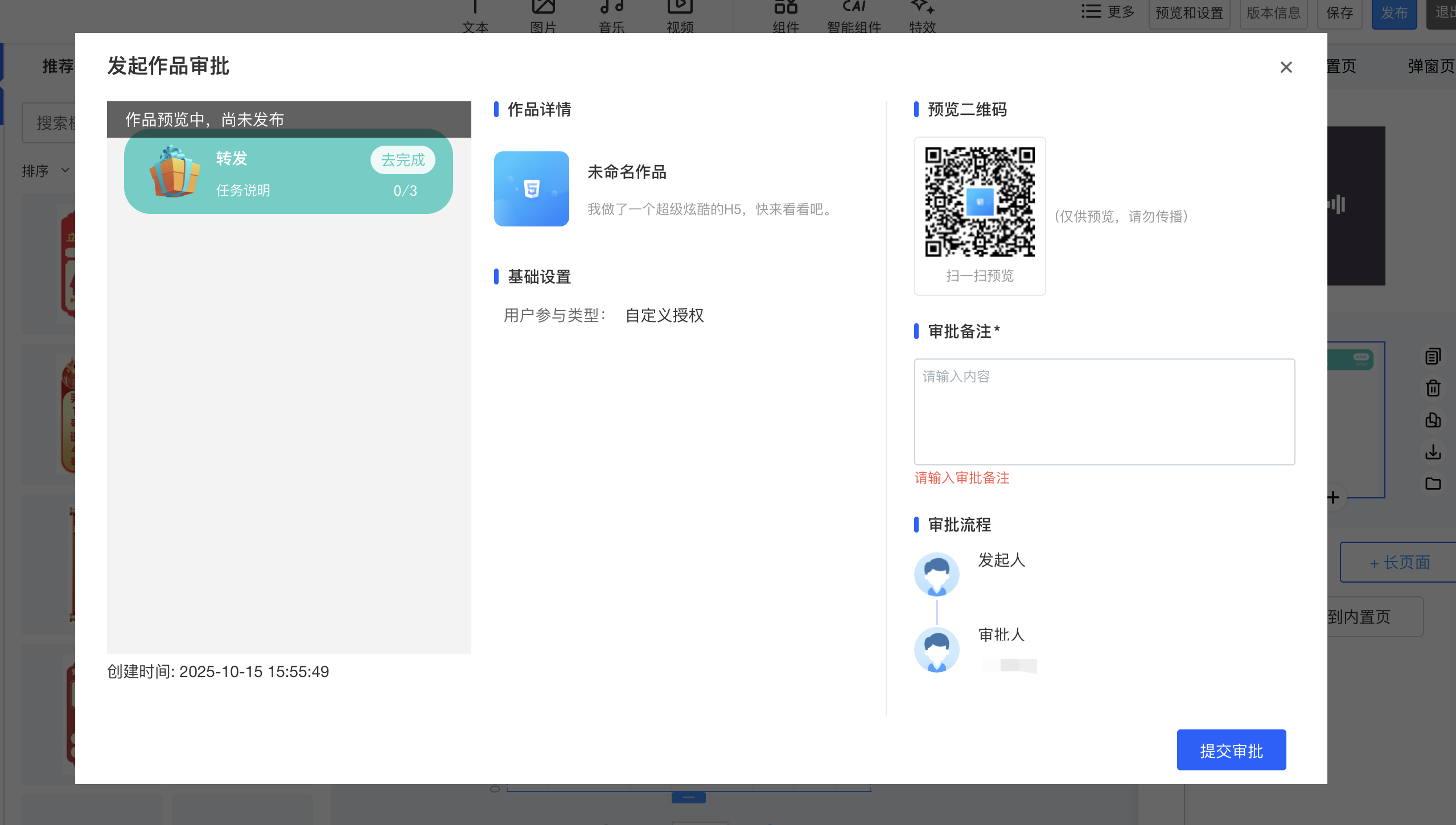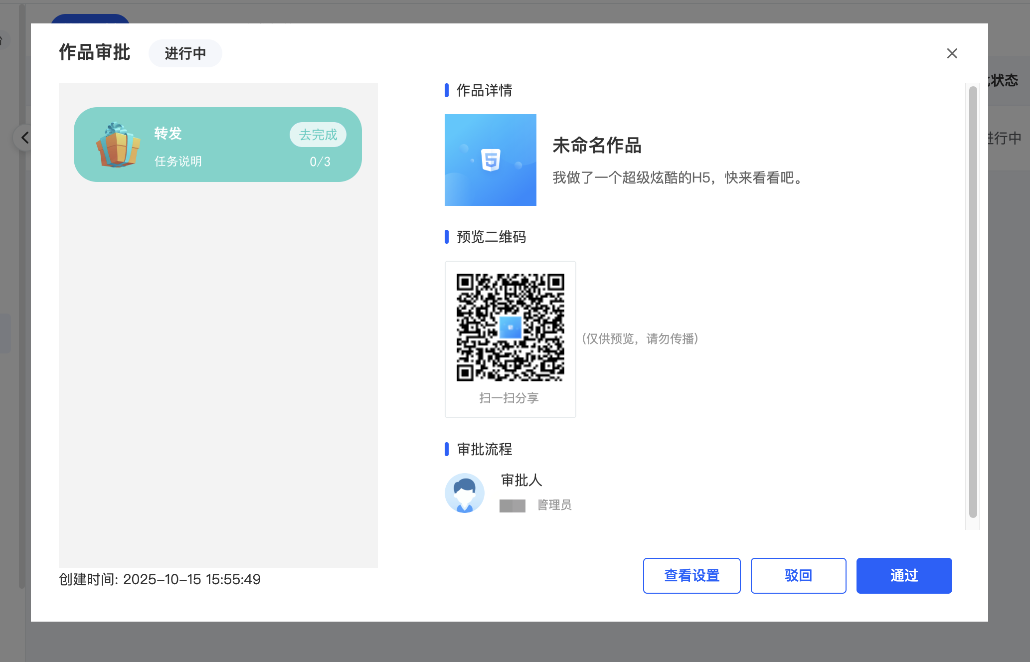 为了适配客户审批的需求,我们增加了作品审批的功能,客户通过设置审批人和审批规则,就可以对要发布的作品进行审批通过和驳回,确保了作品内容的准确性,提高作品质量,提升营销效果。