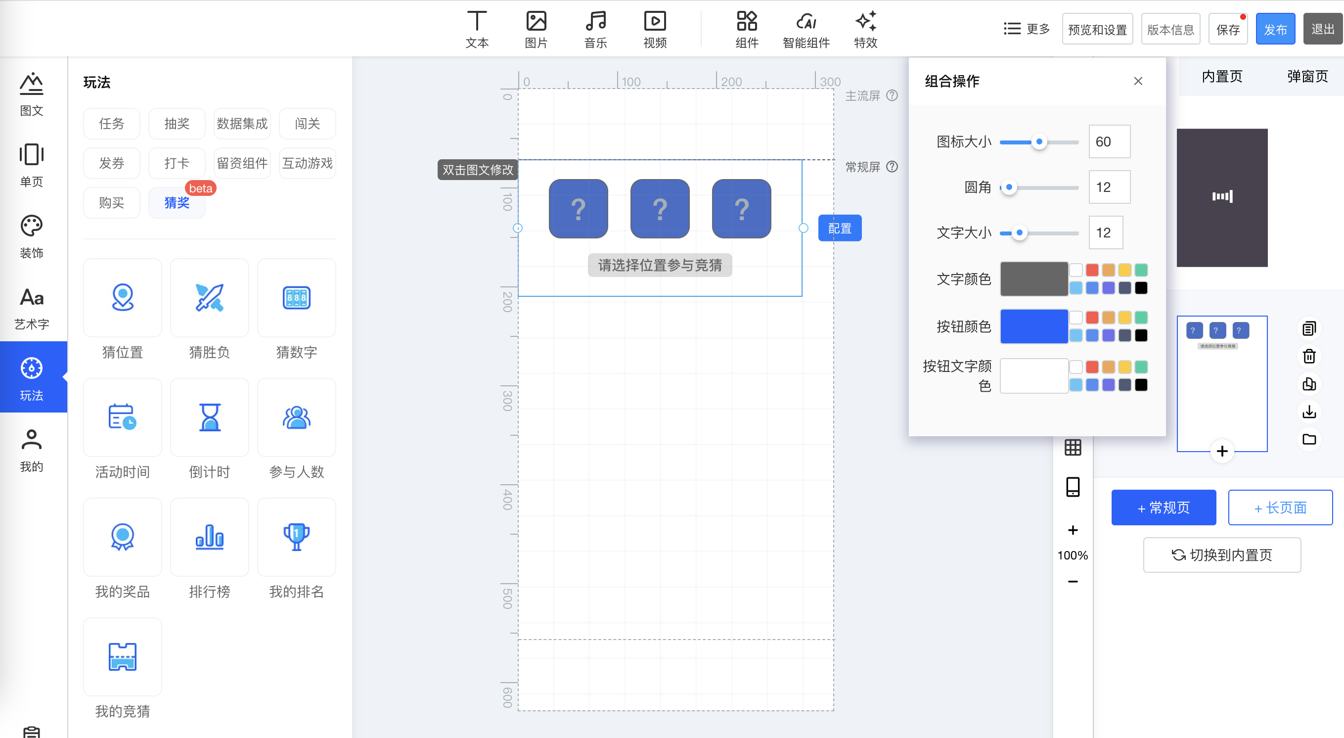 总结:通过灵活设计规则和奖励,猜奖玩法能有效提升用户参与度,适用于几乎所有需要互动的场景,我们在H5编辑器玩法中新增了猜奖玩法,用户可以根据自己的业务场景灵活配置使用。
