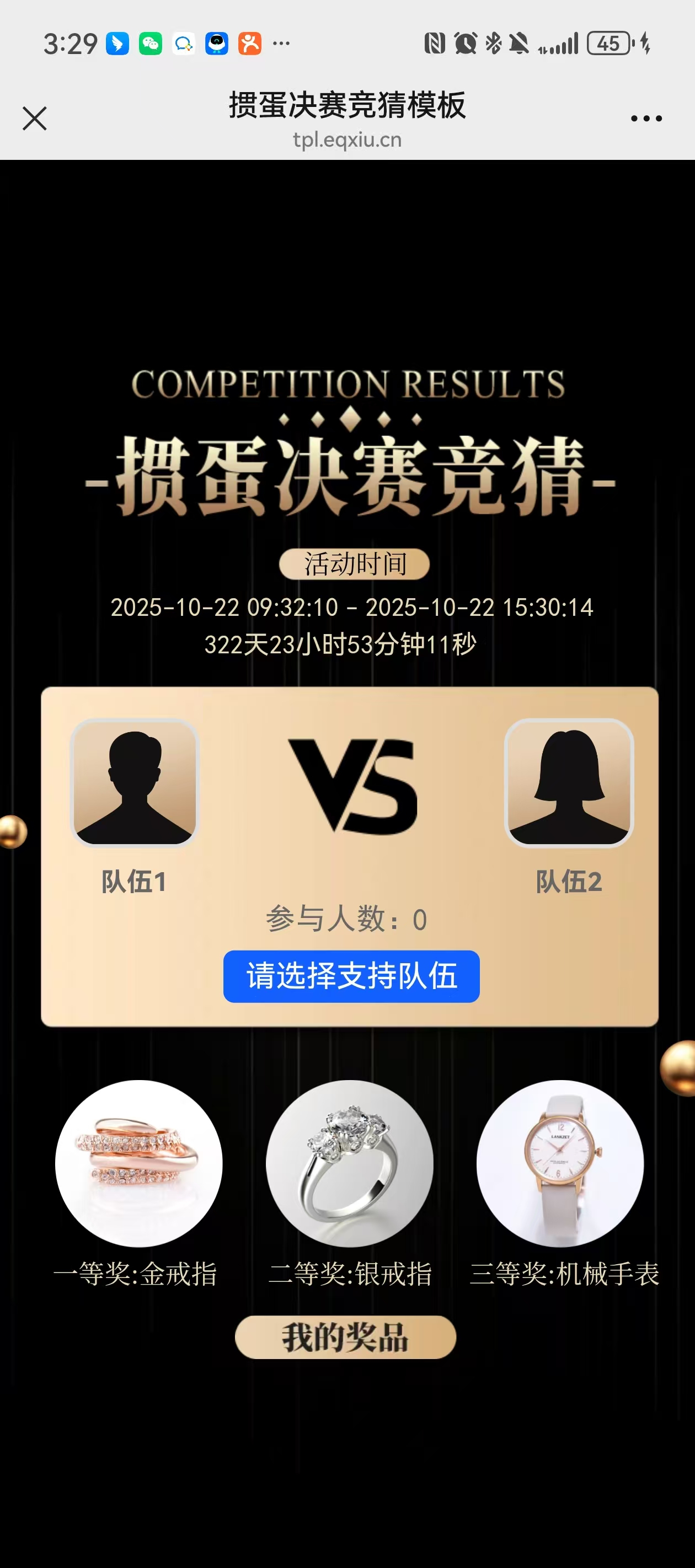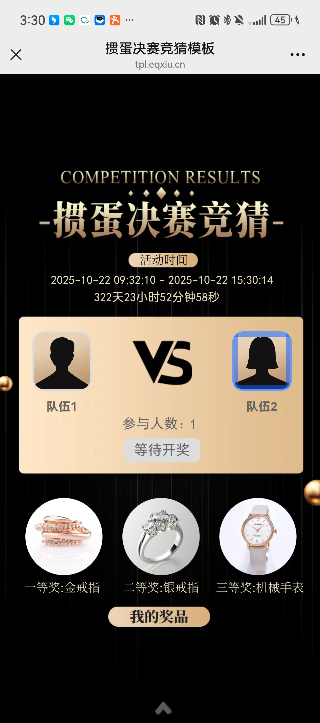 设置完规则之后,需要在画布中添加相应的组件,比如活动时间、倒计时、参与人数和中奖列表,并根据自己的需求美化页面(后续我们会增加猜奖模板)