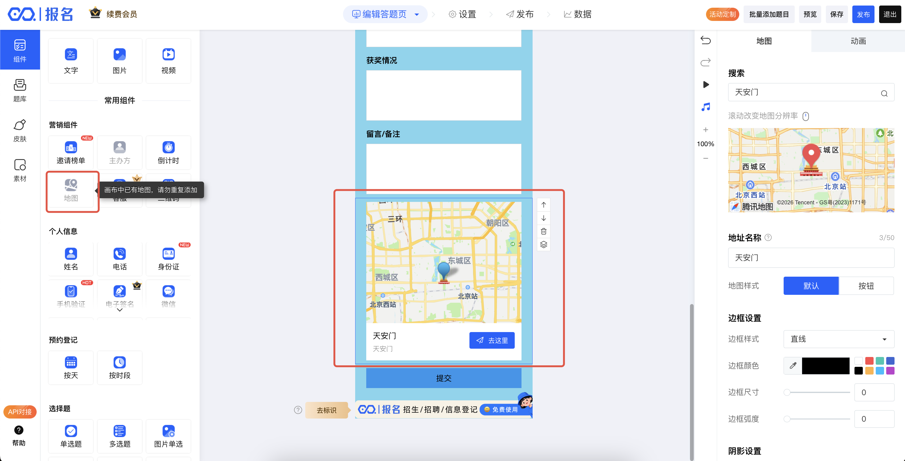 在作品中添加一个地图组件,可以很有效的帮助大家营销!