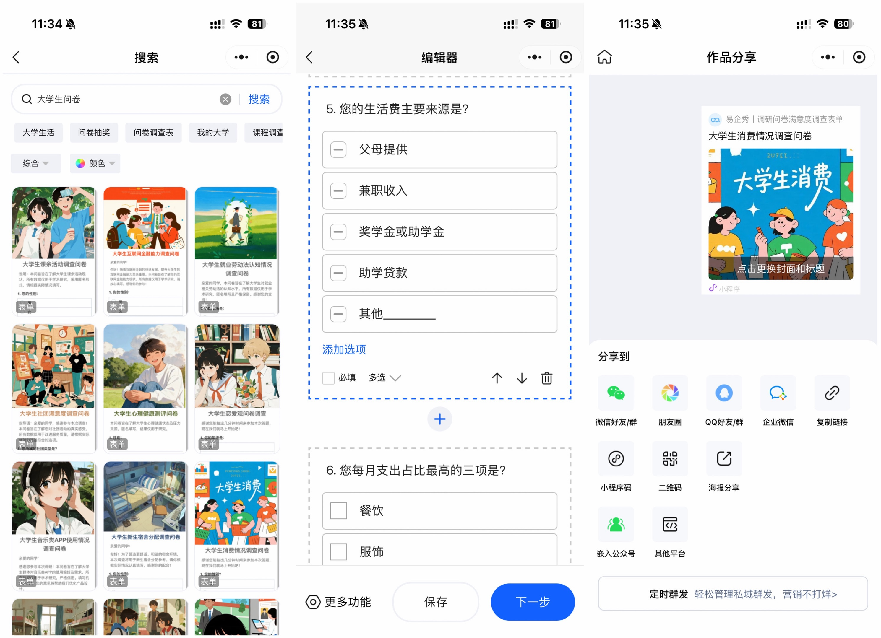 现在,我身边不少同学都在用易企秀问卷小程序。做毕业论文调研的、做社团满意度调查的、做校园活动反馈的,都说“真香”。