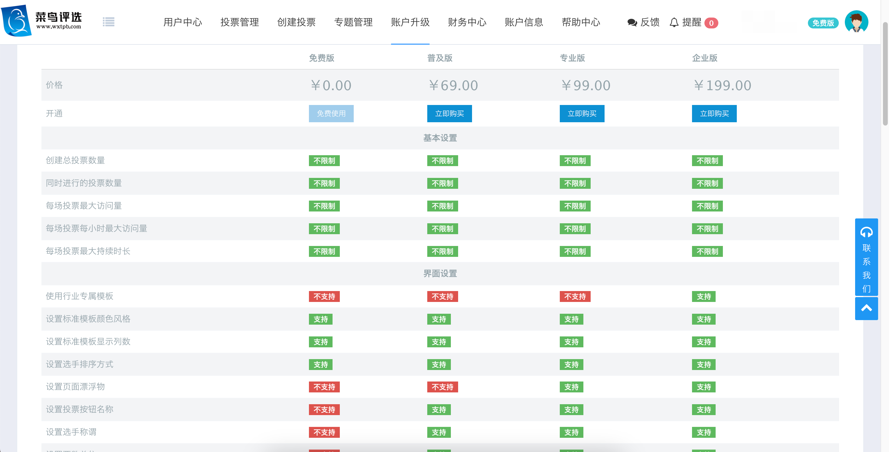 1)功能完全免费,且投票特定的功能丰富(包括多种投票形式、投票规则设置、防刷设置、融入微信生态的多样分享方式等),无隐形收费;