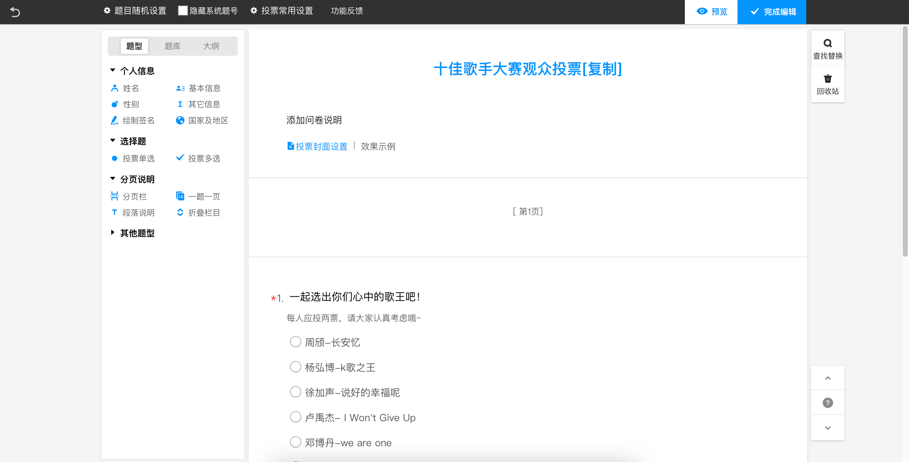 2)制作界面较为复杂,与投票不相关的功能混在一起,增加理解难度;