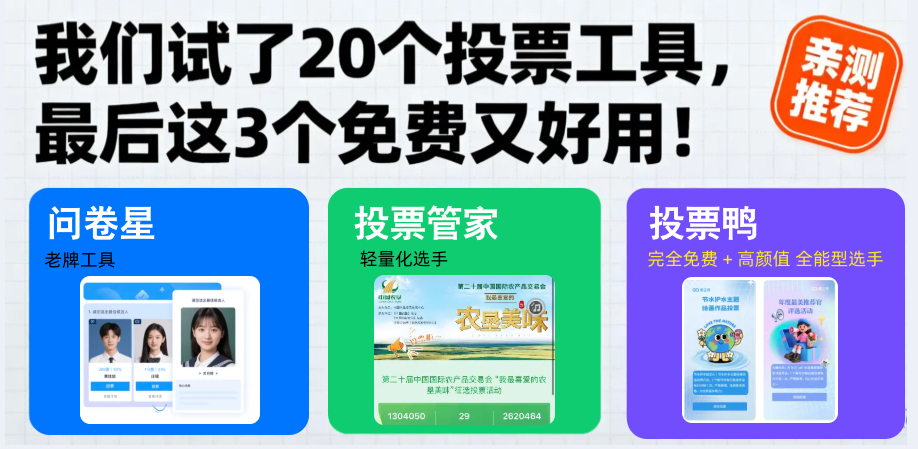 踩坑无数后,我和团队亲测筛选,终于挖出了一批真正免费、好用、稳定的投票工具,日常运营完全够用。今天直接分享 3 个我们一直在用的平台,各有优势,适配不同场景,闭眼冲不踩雷!