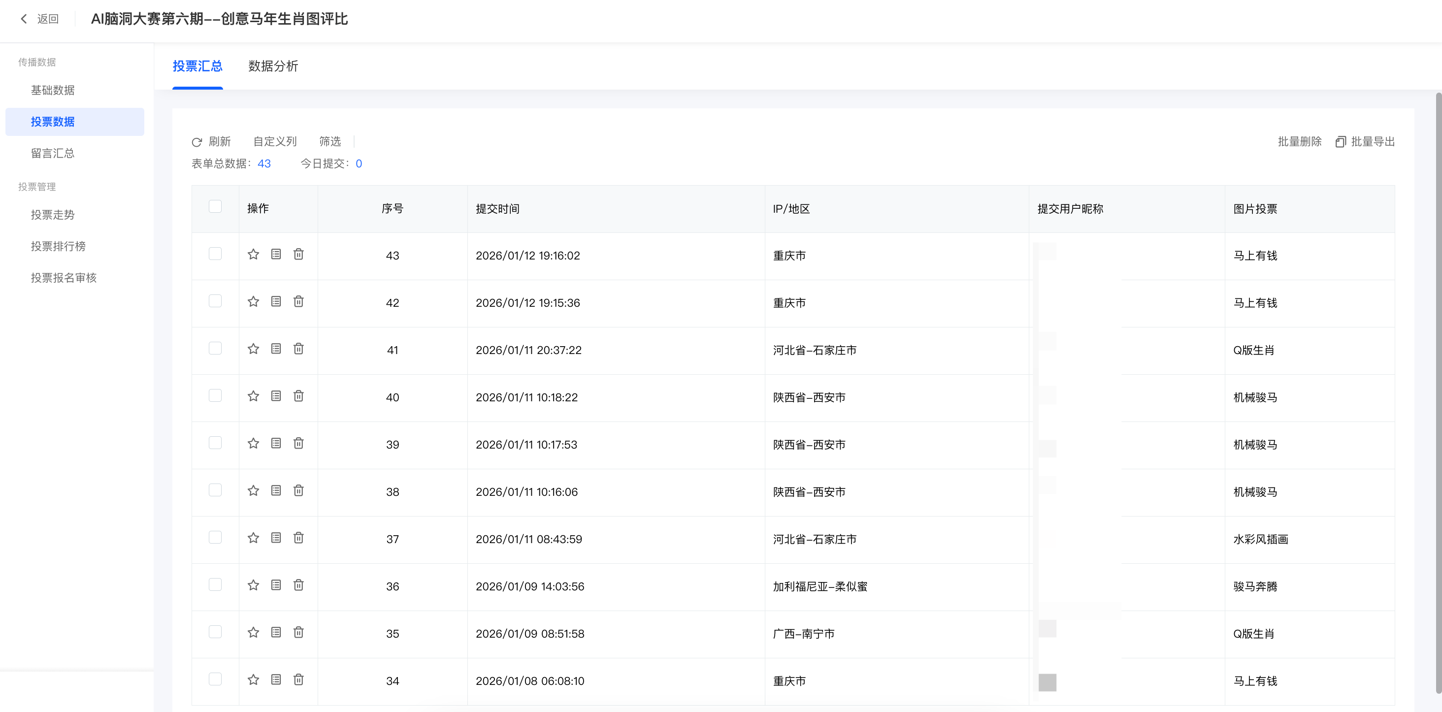 既然刷票无法完全杜绝,通过实际票数的异常增长作为根本的判断依据,主办方可结合投票走势以及投票明细,来清除刷票数据,维持投票活动的公平性,通过该方法,可以最大限度的减少刷票行为,让刷票成为无用功。