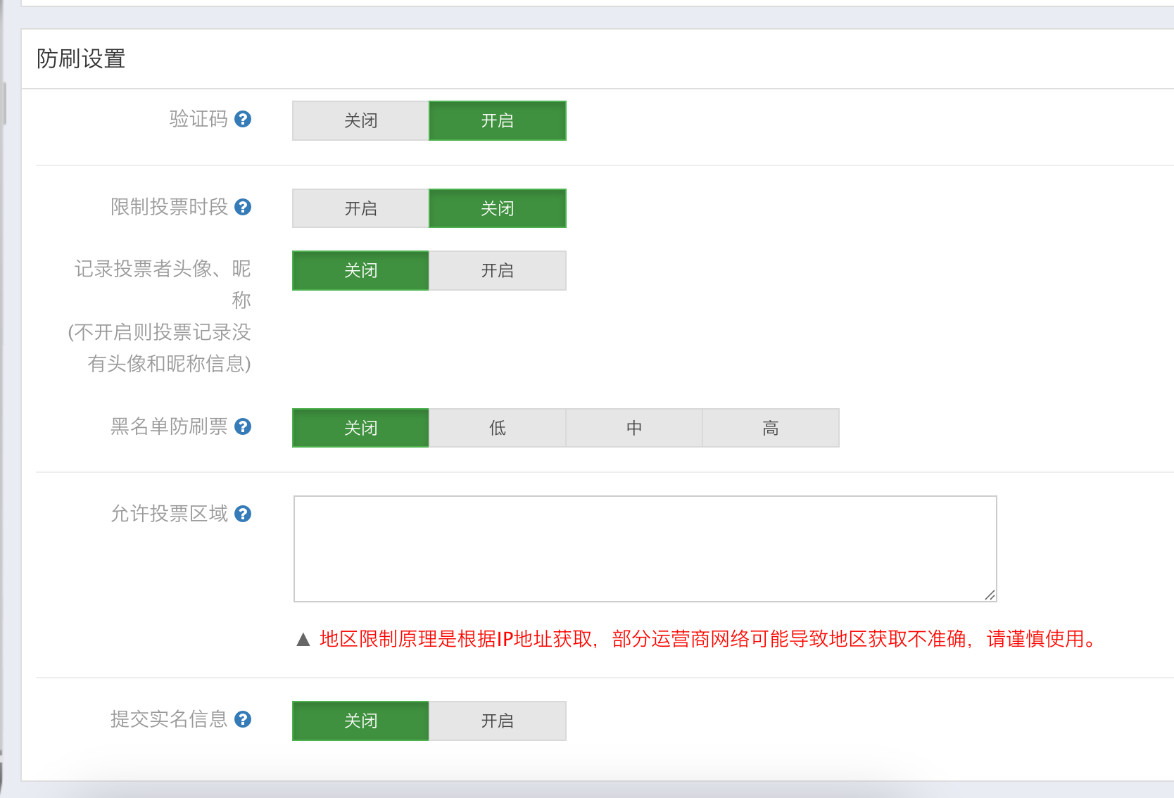 限制投票区域,可以让投票参与人限定在一定范围内,降低刷票的可能;